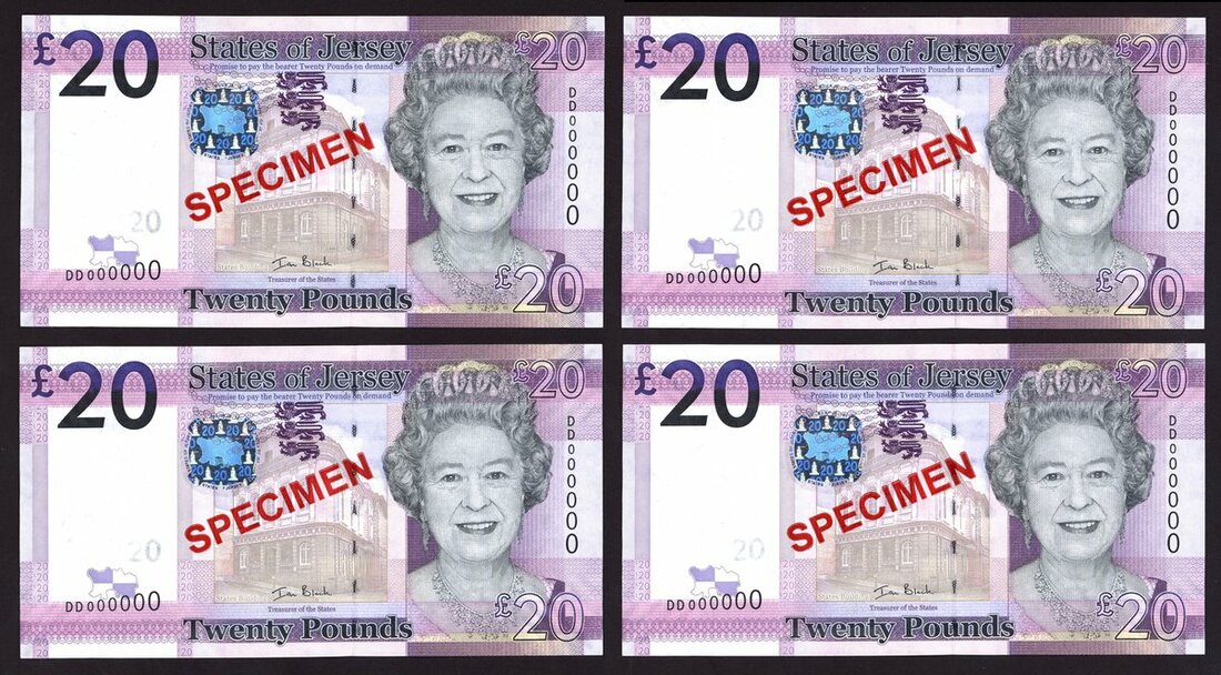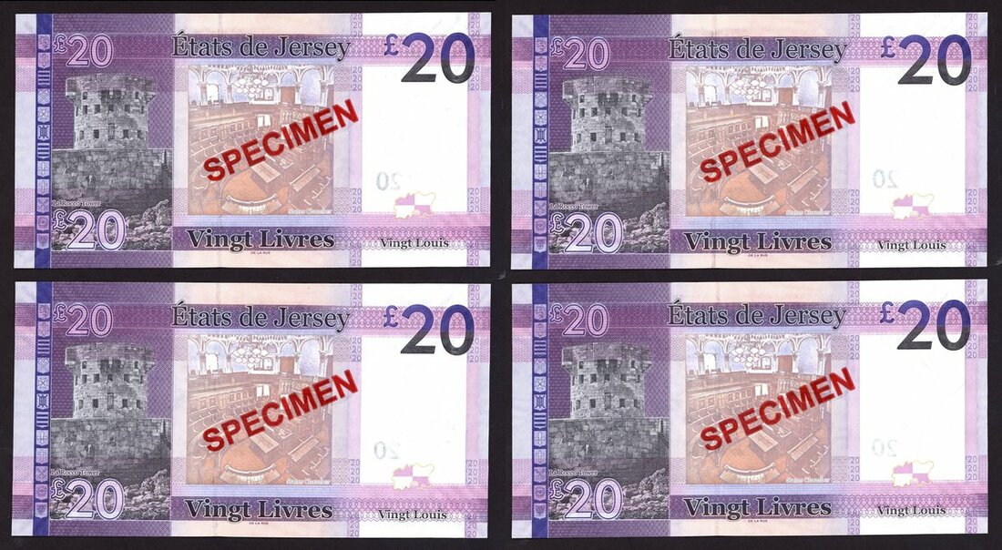 States of Jersey, specimen £20 (4), ND (2010), prefix DD, purple, Black signature