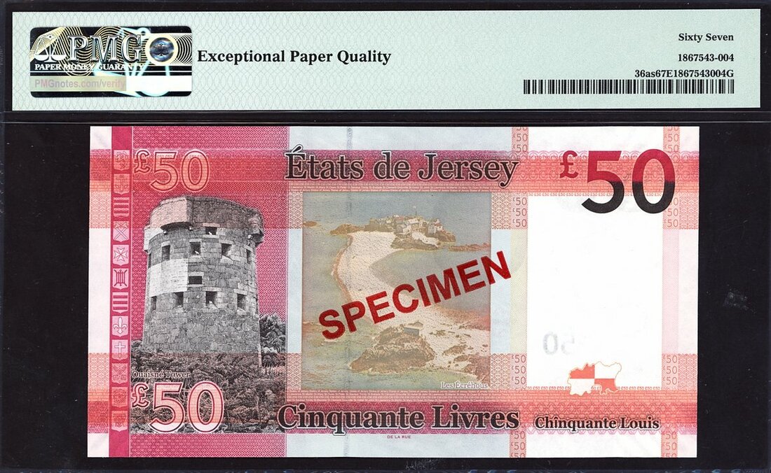 (x) States of Jersey, specimen £50, ND (2010), serial number AD000000, (Pick 36as, TBB B131as), in PMG holder 67 EPQ Superb Gem Unc