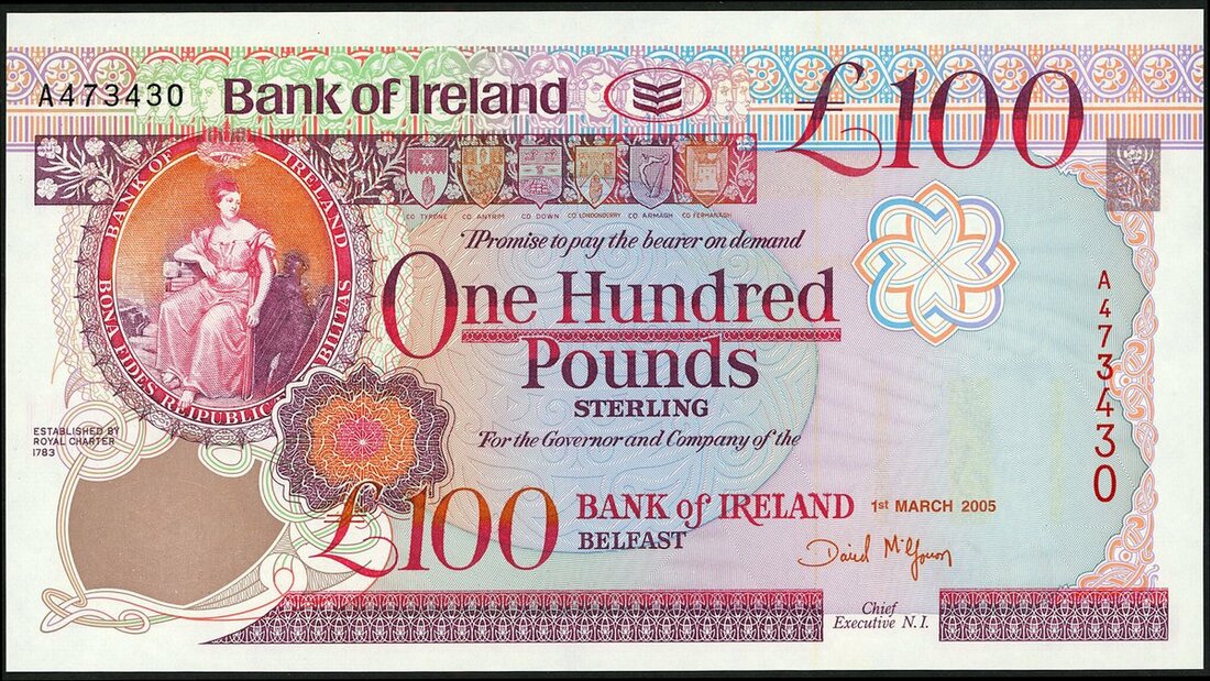 Bank of Ireland, £100, 1 March 2005, serial number A473440, (PMI BA 141, Pick 82a), uncirculated