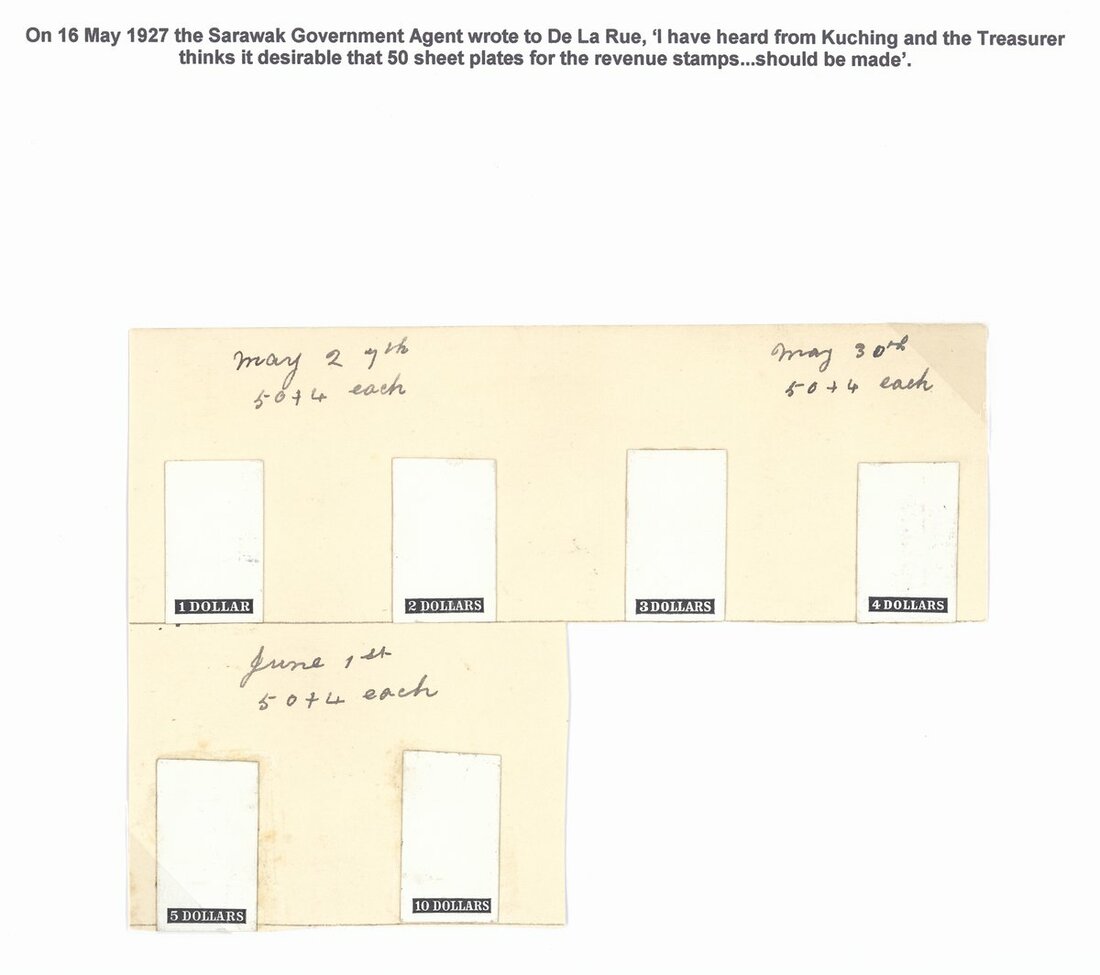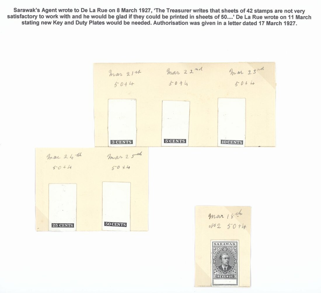 Note: These die proofs were prepared for the 1927 issue when the sheet size was increased from 42 to 50.