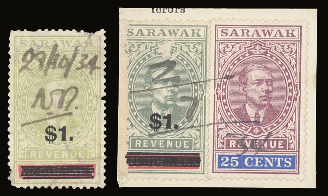 Auction: 21116 - The Bernard Lardner Collection of Sarawak Revenue and Telegraph Stamps - eAuction