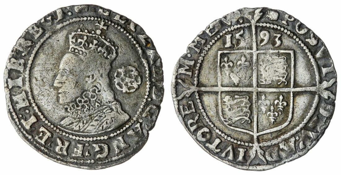 The Frank Viles Collection of Sixpences | Elizabeth I (1558-1603), Sixpences, 1593, Sixth Issue, mintmark tun, 2.97g, 9h / 2.82g, 11h (Spink 2578B; North 2015), first fine; second creased and flattened, good fine.(2)