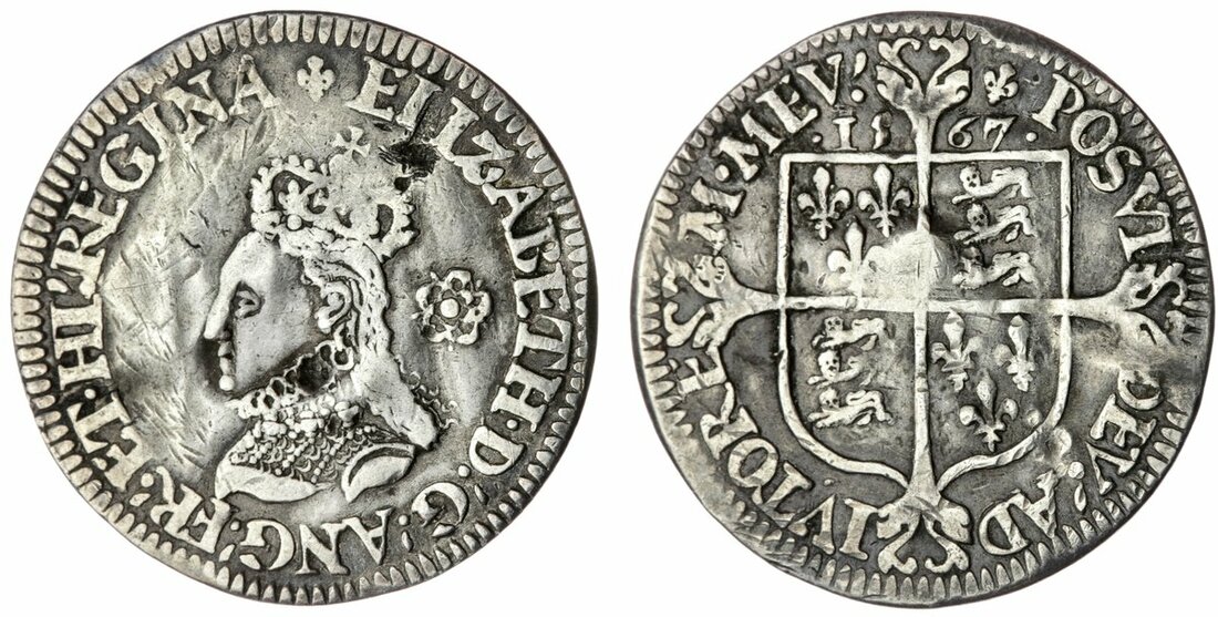 The Frank Viles Collection of Sixpences | Elizabeth I (1558-1603), Sixpences (3), Milled Coinage, mintmark lis, 1567, 2.86 g, 6h; 1567, 2.98 g, 6h; 1568, 2.88 g, 6h (Spink 2599; North 2030), first creased and flattened, scratches, fine; second polished, patchy dark toning, good fine; third weak portrait, good fine. (3)