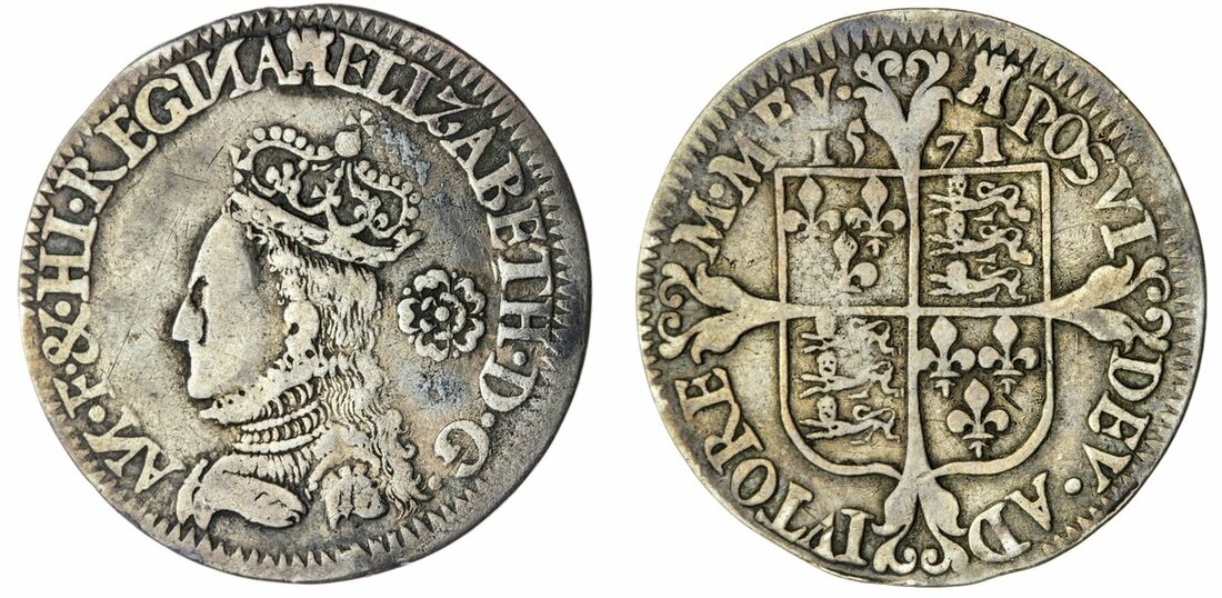 The Frank Viles Collection of Sixpences | Elizabeth (1558-1603), Sixpence, 1571/0, Milled Coinage, mintmark castle/lis, 2.93 g, 6h (Spink 2600; North 2031), creased and flattened, very light horn silver on obverse, good fine, scarce