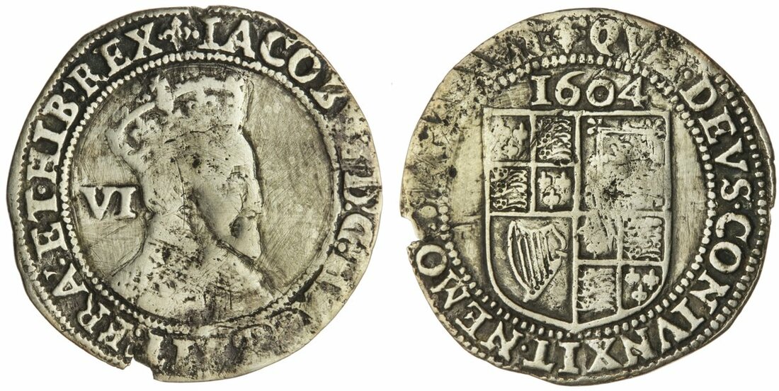 The Frank Viles Collection of Sixpences | James I (1603-25), Sixpences, 1604(2), First Coinage, second bust, mintmark thistle, 2.44/2.55g, 9/9h (Spink 2648; North 2075), first very good, reverse better, second tooled in fields, chipped, fine.(2)