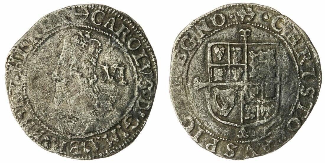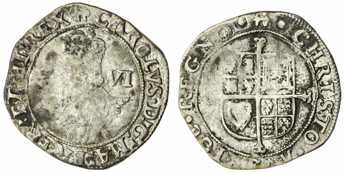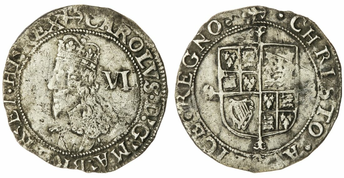 The Frank Viles Collection of Sixpences | Charles I (1625-1649), Sixpences, 1638-1639, Group E, type 4.2, Tower (3), fifth bust, single-arched crown, m.m. anchor, including pointed flukes to left / right; rounded flukes right/right; and, pointed flukes right/right; lastly, rounded flukes right/pointed flukes right, 2.67g (Spink 2816; North 2245; cf. Brooker 632, 633-35), one scruffy, all on irregular flans, good to almost fine, a fun quarter (4)