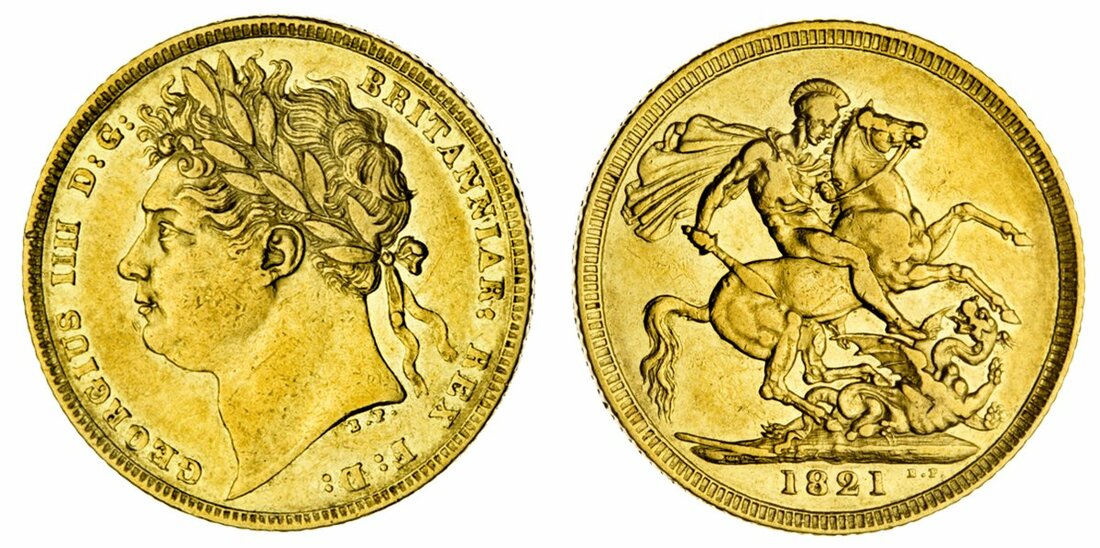 (g) George IV (1820-1830), Sovereign, 1821, edge milled, 7.95g, 7h (Spink 3800; Marsh 5; MCE 471; Stratos 119-120), cleaned but residually lustrous, almost very fine