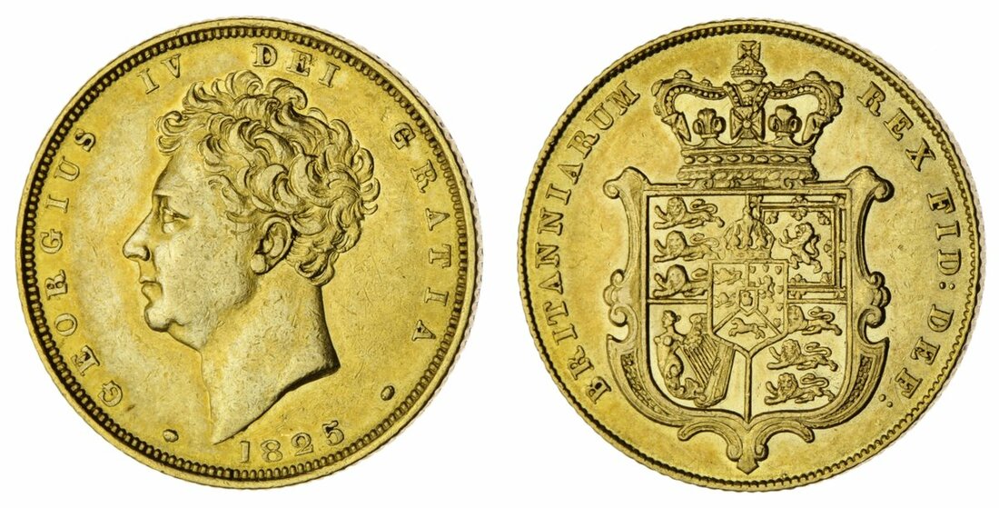George IV (1820-1830), Sovereign, 1825, second type, rev. crowned shield (Spink 3801; Marsh 10), bold very fine, traces of lustre in the recesses, reverse extremely fine