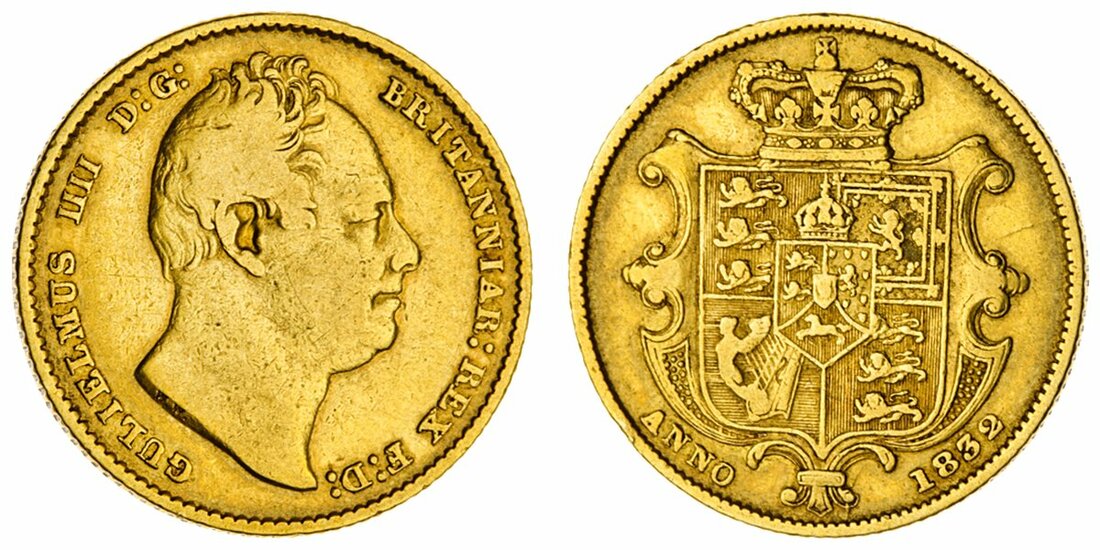 (g) William IV (1830-1837), Sovereign, 1832, second bust right, nose to second I, coarse beading on obverse, edge milled, 7.83g, 5h (Spink 3829B; Bentley 28; Marsh 17; MCE 490; Stratos 131), rubbed and wiped, fine