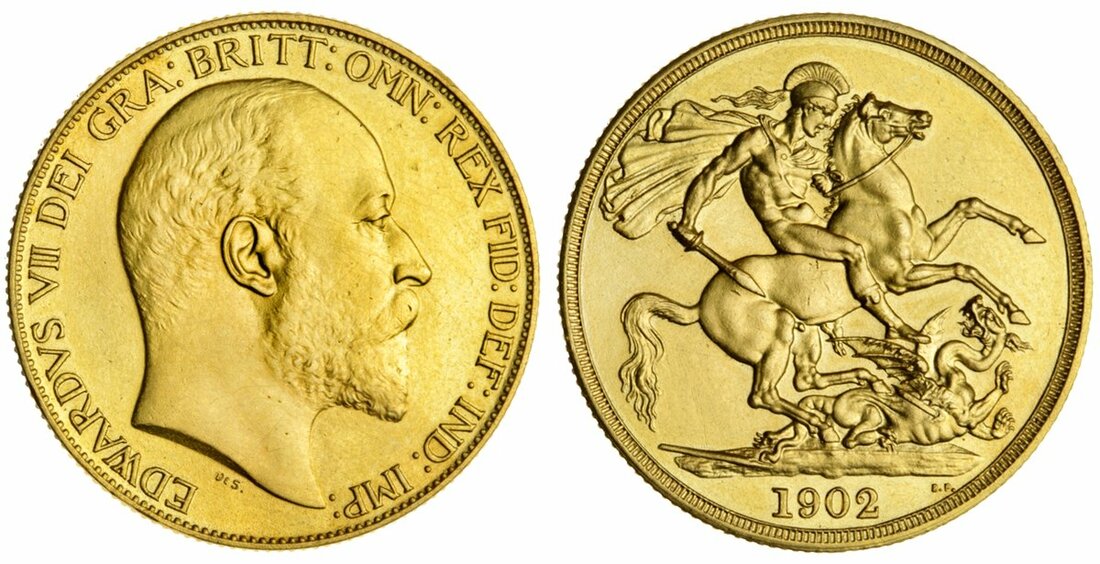 (g) Edward VII (1902-1910), Matte Proof Two-Pounds, 1902, by de Saulles and Pistrucci, edge milled, 15.97g, 12h (Spink 3968; W&R 406; Stratos 176), cleaned with resultant hairlines, otherwise about extremely fine