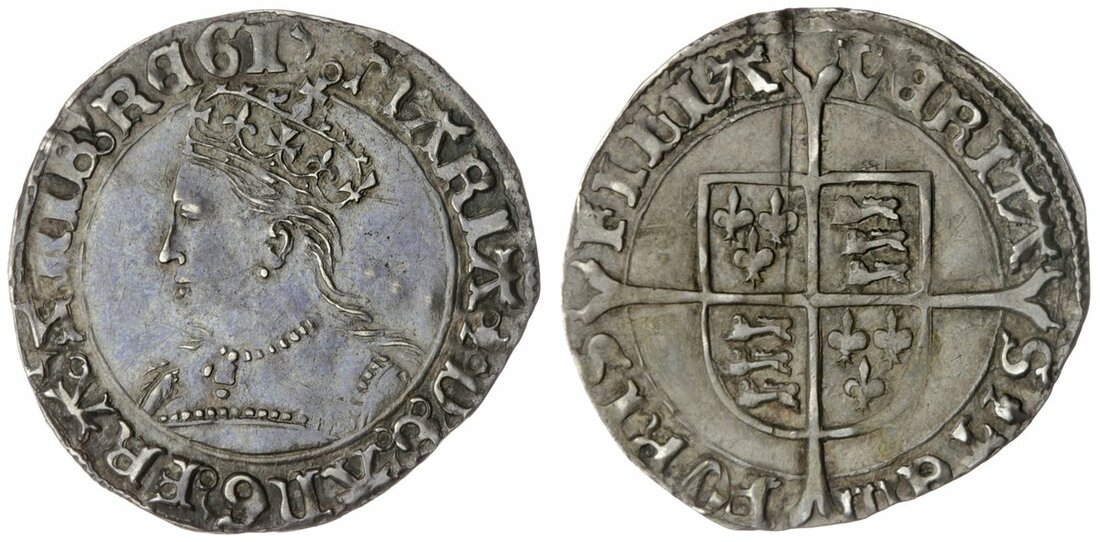 Mary I, Sole Reign (1553-1554), Groat, m.m. pomegranate, creased and flattened, otherwise a remarkable example for type, handsomely toned, a really bold very fine with an excellent portrait
