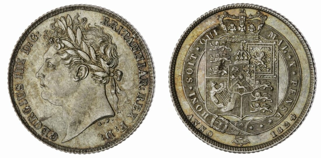 George IV (1820-30), Sixpence, 1824, second reverse (Spink 3814; ESC 2425(1657)), a most pleasing coin with original surfaces, a dull, slightly golden toning, a couple of scratches on the neck, otherwise about uncirculated