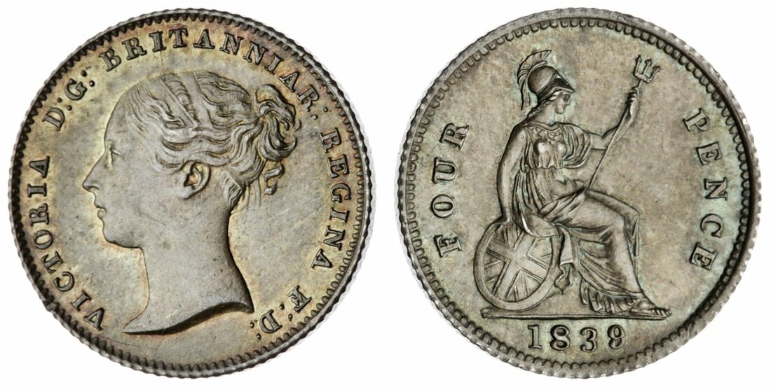 Victoria (1837-1901), Britannia Fourpence or Groat, 1839, edge milled, 12h (Spink 3913; ESC 3323 [1932]), attractively cabinet toned and lustrous, a pleasing extremely fine