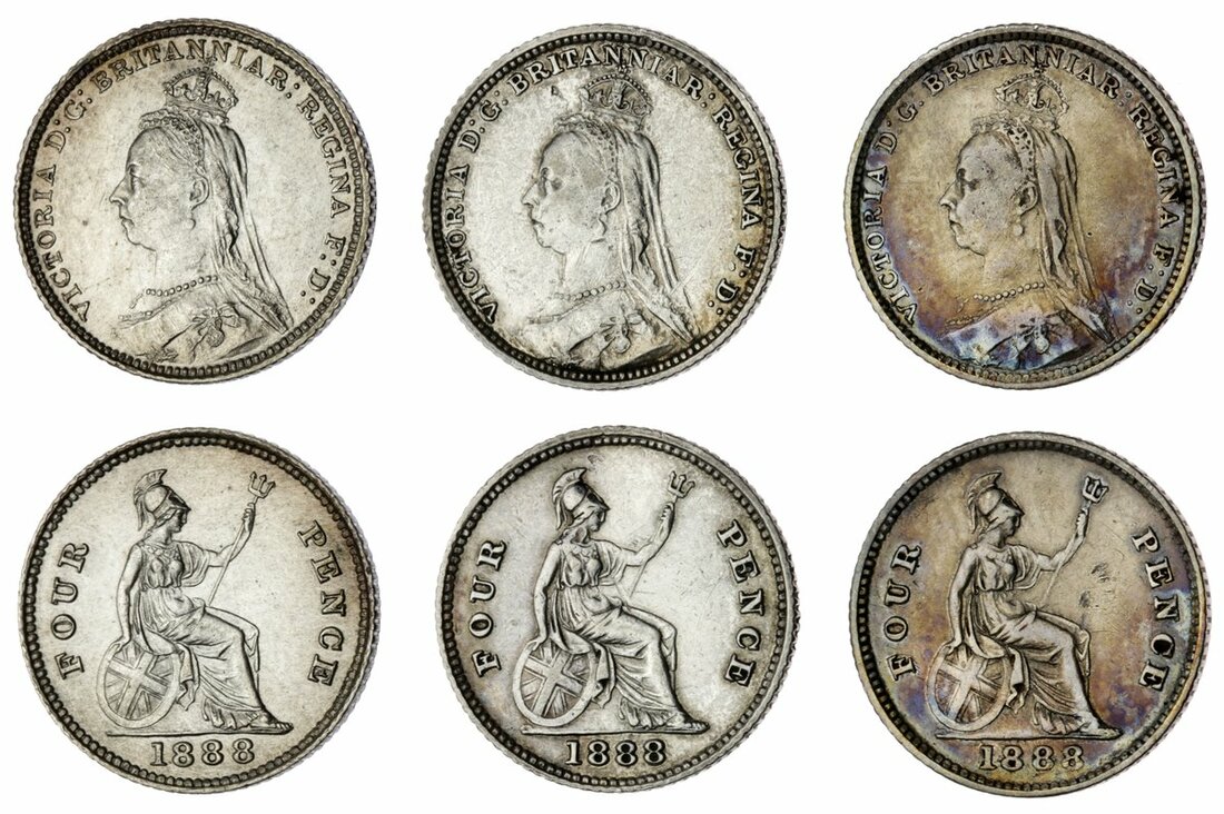 Victoria (1837-1901), Britannia Fourpence or Groats, 1888 (3), issued for Colonial use (Spink 3913; ESC 3359 [1956]), generally cleaned or with surface marks, fine to a bold very fine, the last Currency issue Groat (3)
