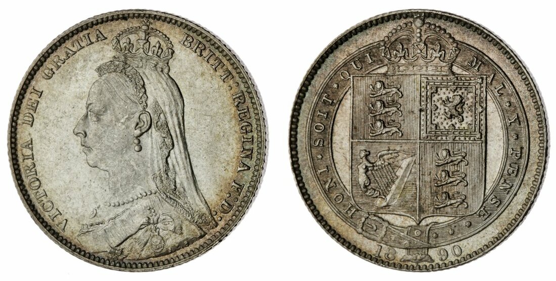 Victoria (1837-1901), 'Jubilee' Shilling, 1890 (Spink 3927; ESC 3144(1357)), choice mint state