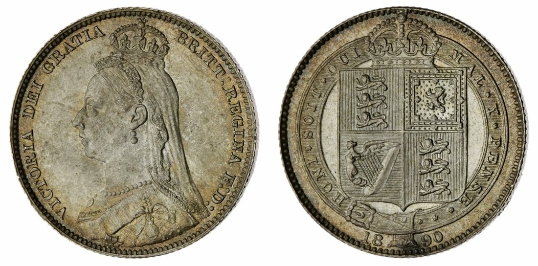 Victoria (1837-1901), 'Jubilee' Shilling, 1890 (Spink 3927; ESC 3144(1357)), choice mint state