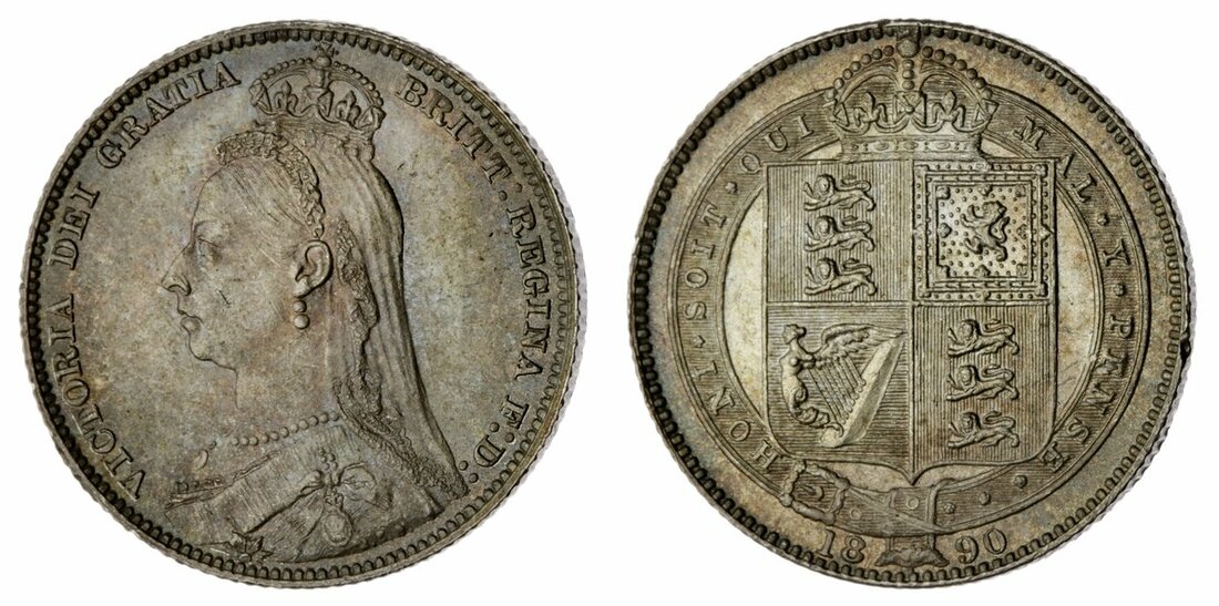 Victoria (1837-1901), 'Jubilee' Shilling, 1890 (Spink 3927; ESC 3144(1357)), choice mint state