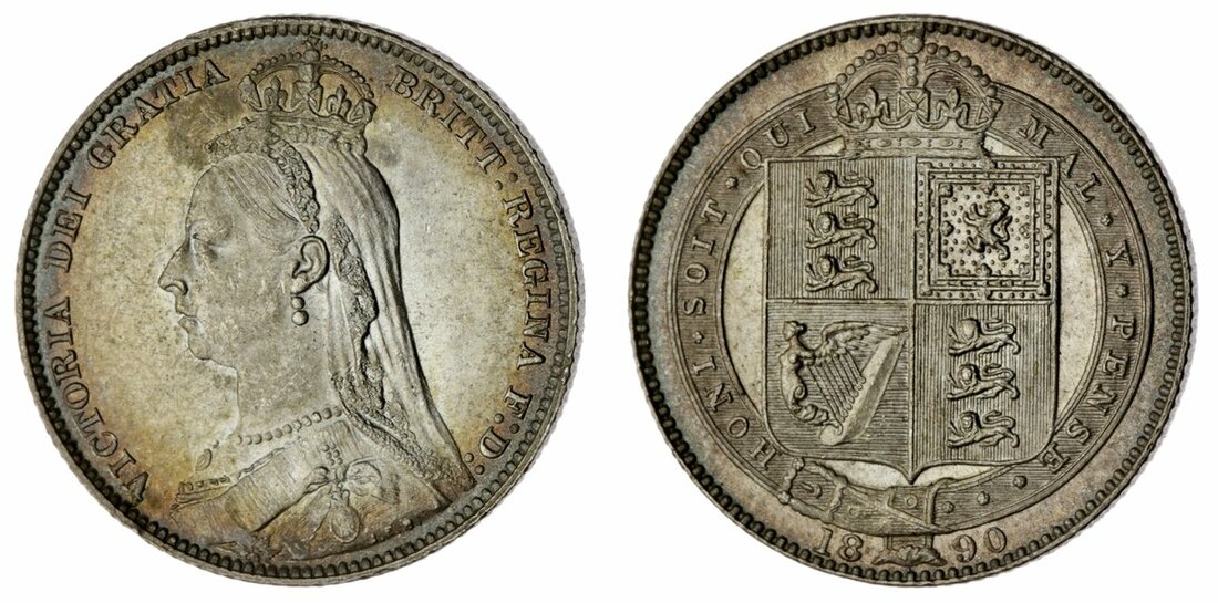 Victoria (1837-1901), 'Jubilee' Shilling, 1890 (Spink 3927; ESC 3144(1357)), choice mint state
