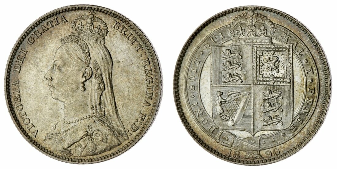 Victoria (1837-1901), 'Jubilee' Shilling, 1890 (Spink 3927; ESC 3144(1357)), choice mint state