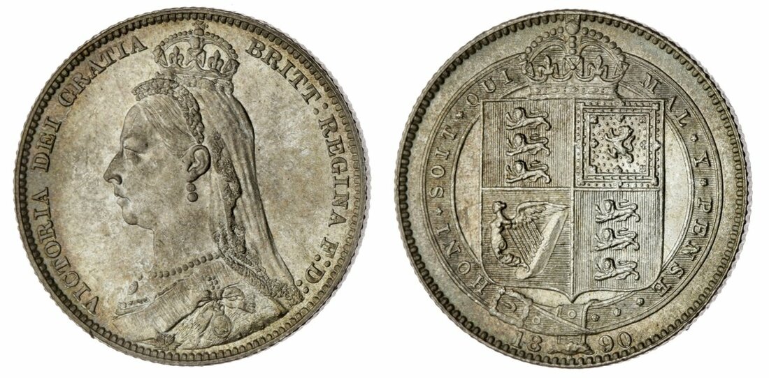 Victoria (1837-1901), 'Jubilee' Shilling, 1890 (Spink 3927; ESC 3144(1357)), choice mint state