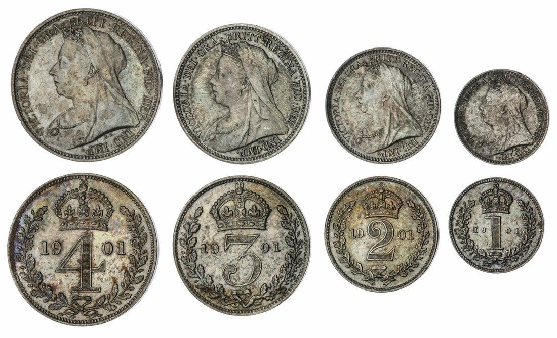 Victoria (1837-1901), Maundy Set, 1901, Fourpence to Penny (Spink 3943), dark tone overlying brilliant surfaces, much as struck (4)