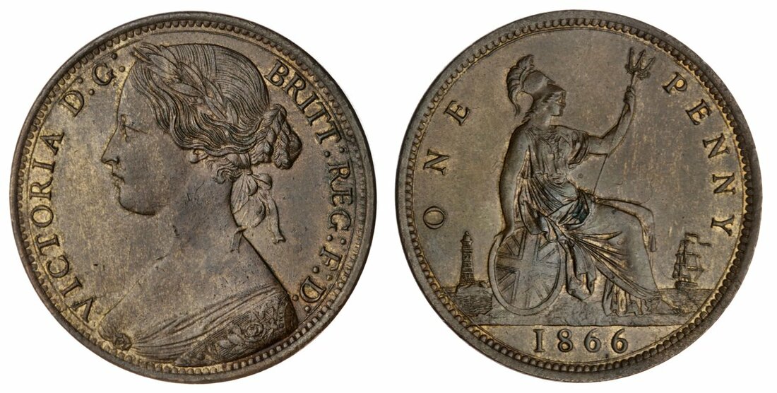 Victoria (1837-1901), Penny, 1866, young bust l., rev. Britannia std. r., with shield and trident (S.3954; Freeman 52; Peck 1670), a spot of verdigris at reverse centre, uncirculated, lustrous in recesses