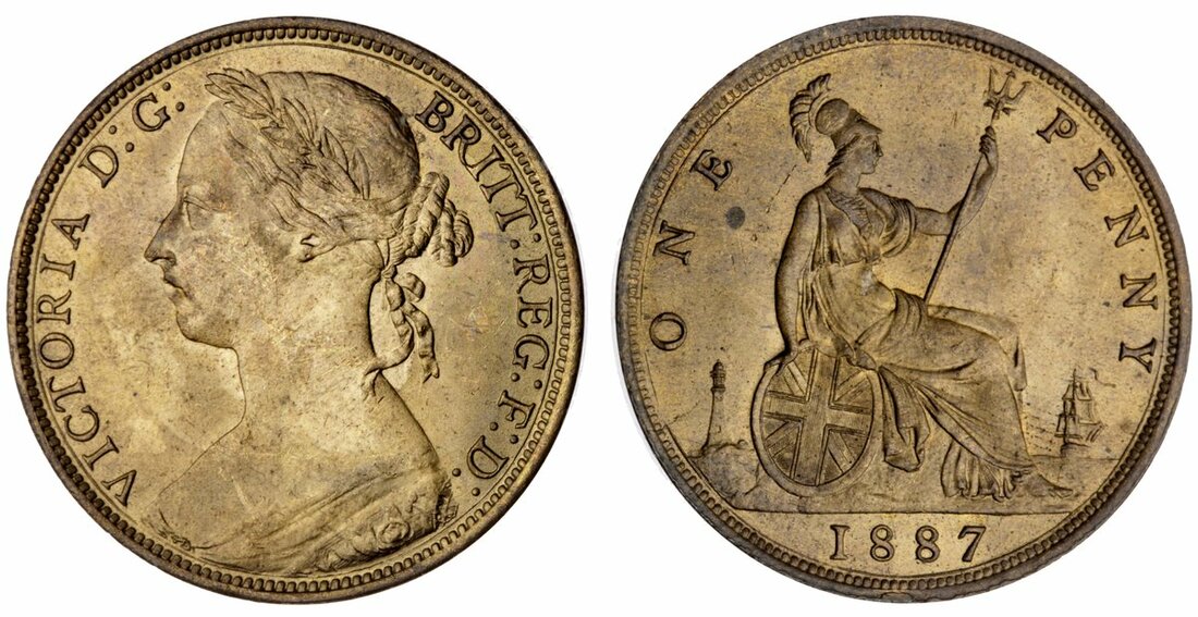 Victoria (1837-1901), Penny, 1887, young bust l., rev. Britannia std. r., with shield and trident (S.3954; Freeman 125; Peck 1739), light bag marks, flan flaw behind Britannia, uncirculated and lustrous