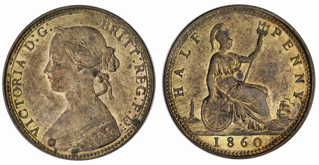 Victoria (1837-1901), Halfpenny, 1860, beaded borders, young bust l., rev. Britannia std. r., with shield and trident (S.3956; Freeman 258), a few carbon spots, very light wiping before Britannia, uncirculated