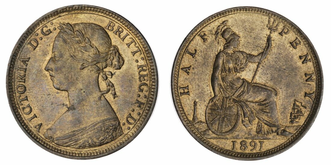 Victoria (1837-1901), Halfpenny, 1891, young bust l., rev. Britannia std. r., with shield and trident (S.3956; Freeman 364), about uncirculated