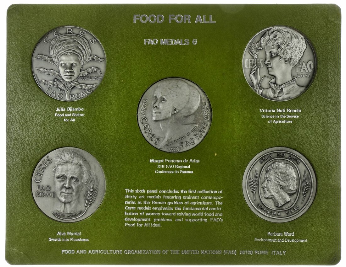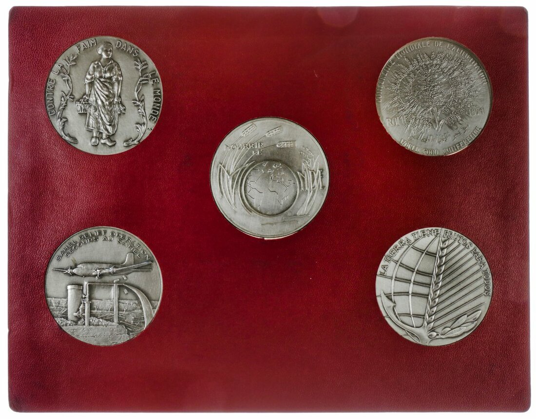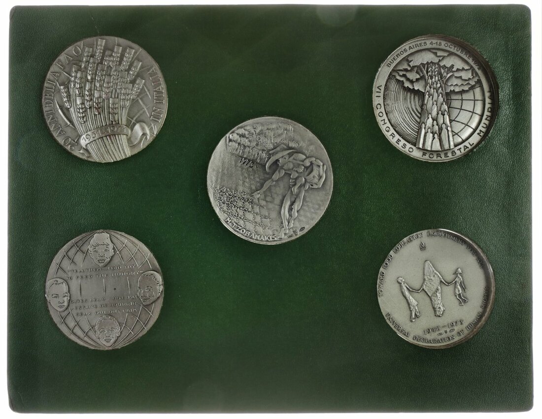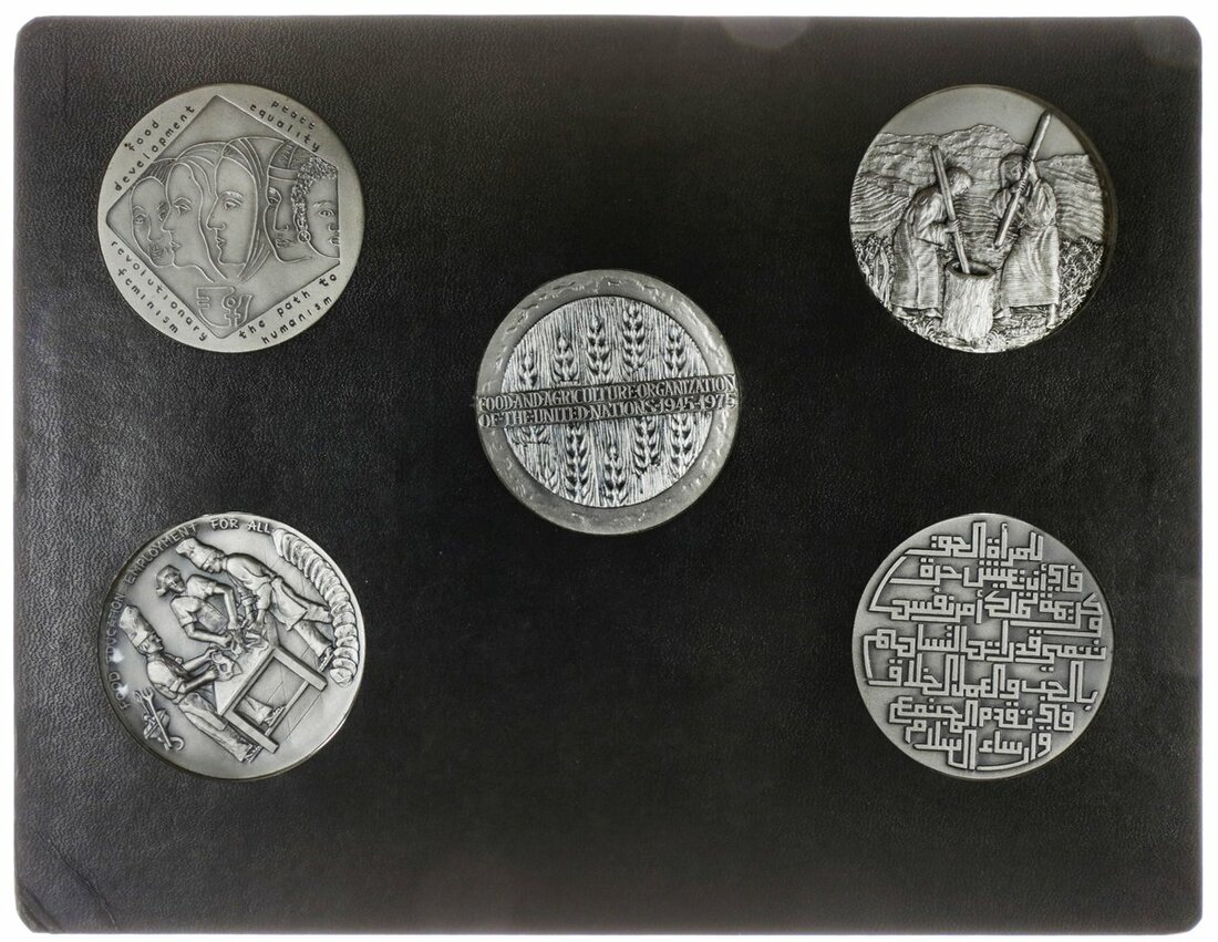 United Nations, Food for All, complete set of AR medals, 1970's, consisting of 30 medals, each 50 g, inserted in six cardboard holders of various colours, all as issued, an impressive set not often seen in silver.