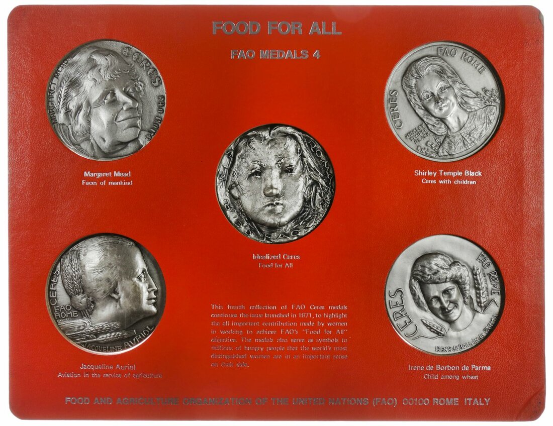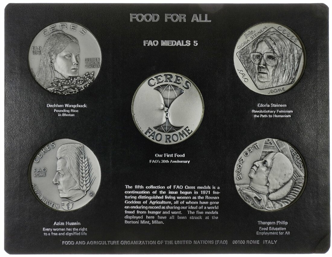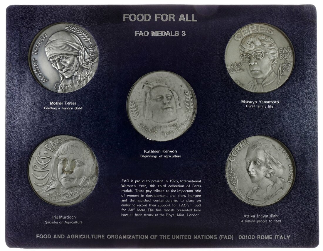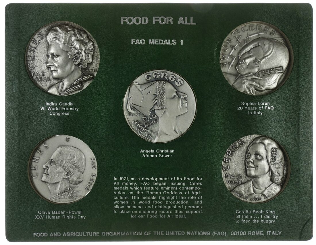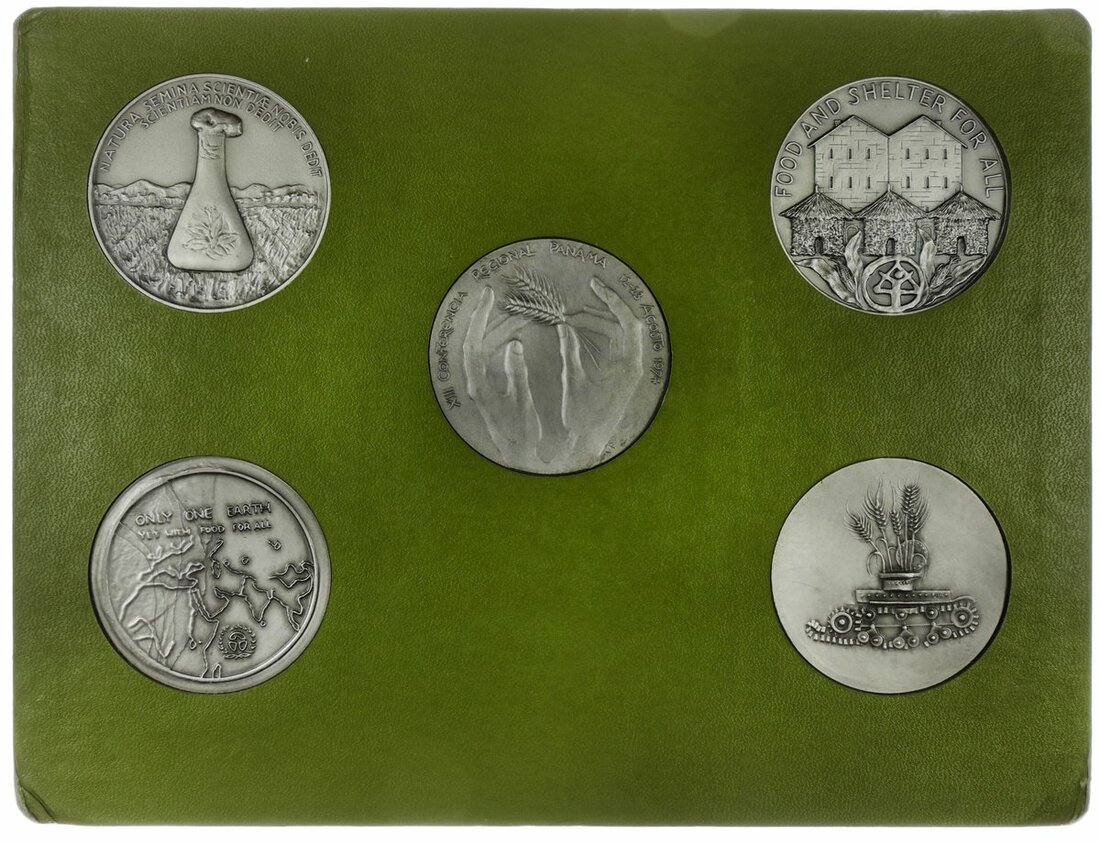 United Nations, Food for All, complete set of AR medals, 1970's, consisting of 30 medals, each 50 g, inserted in six cardboard holders of various colours, all as issued, an impressive set not often seen in silver.
