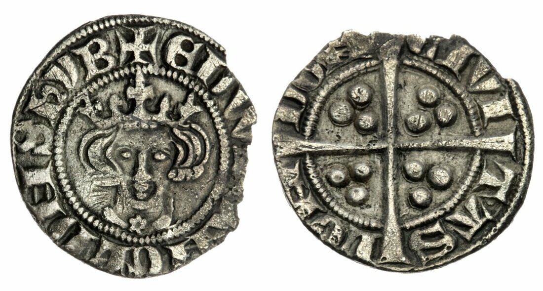 Edward I (1272-1307), New Coinage, Long Cross Penny, Class 7b, 1292-1296, London, long hair, new crown, 1.23g, 9h (North 1033; Spink 1404), heavily chipped between 2 and 4 o'clock, otherwise toned, about very fine, scarce