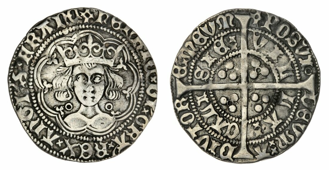 Henry VI, First Reign (1422-1461), Annulet Issue, Groat, 1422-1427, Calais, plain breast, annulets by neck and in second and third quarter, 3.73g, 1h, m.m. pierced cross (North 1427; Spink 1836), crimped and somewhat bright, otherwise a bolder fine