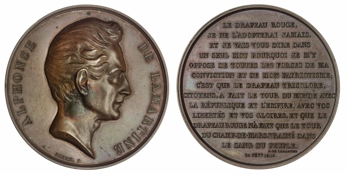 Alphonse De Lamartine Commemorative medal, AE medal, 1848, by F. Borrel, ALPHONSE DE LAMARTINE, bust right, rev. inscription, 51mm