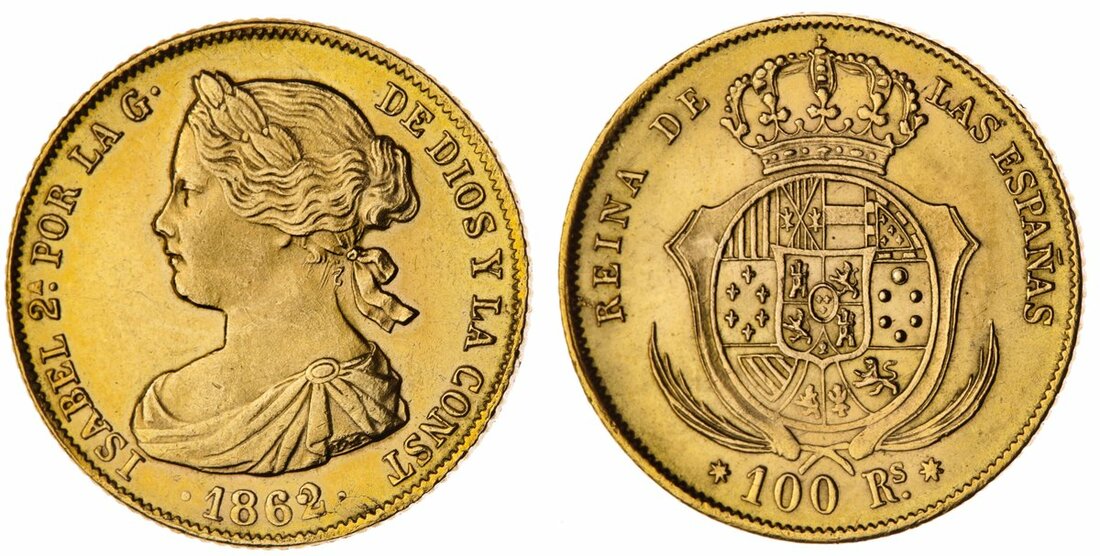 (g) The Trajan Collection | Spain, Isabel II (1833-1868), 100-Reales, 1862, Madrid, 8.40g, 12h (Cal. 789; Fb. 313; KM 605.2; Cayon 17387), lightly wiped, otherwise lustrous, extremely fine
