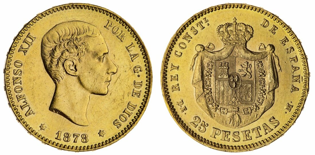 (g) The Trajan Collection | Spain, Alfonso XII (1874-1885), 25-Pesetas, 1878 [1878 in stars], edge starred, 8.07g, 6h (Cal. 70; DEM. VII-105), lightly wiped otherwise pretty cartwheel lustre, good extremely fine and much as issued