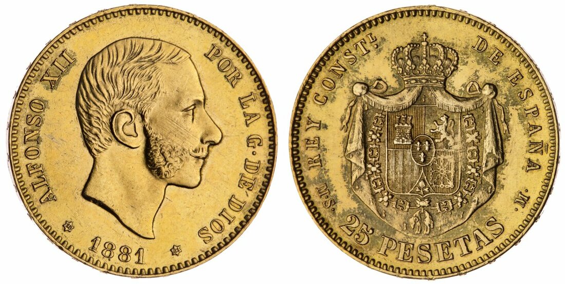 (g) The Trajan Collection | Spain, Alfonso XII (1874-1885), 25-Pesetas, 1881 [1881 in stars], edge starred, 8.10g, 6h (Cal. 82; DEM. VII-110), lightly wiped otherwise pretty cartwheel lustre, good extremely fine and much as issued