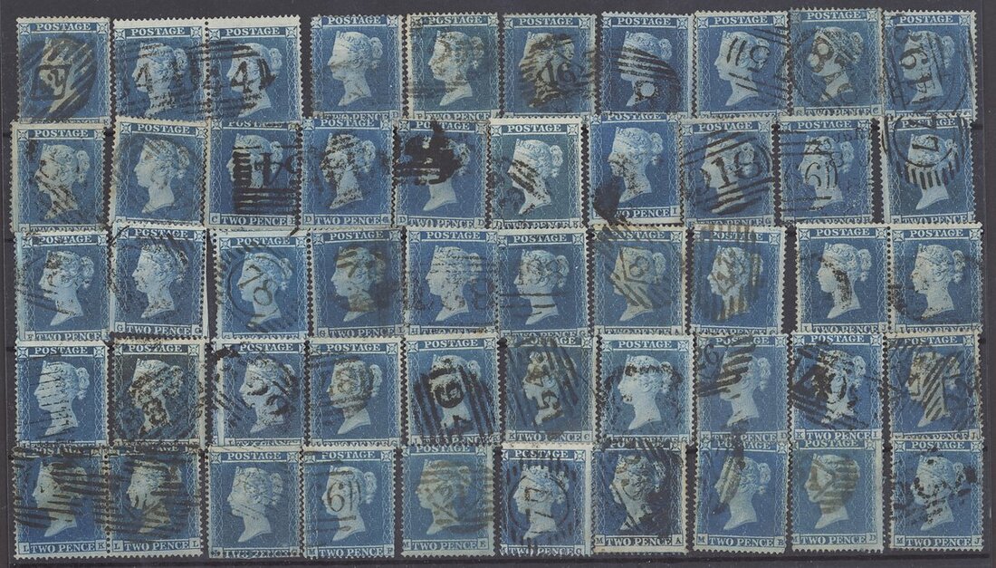 Blued paper, Watermark Small Crown, perf.16, a selection of used with some multiples and showing a range of shades most appearing to be from Plate 4; condition is quite mixed. S.G. 19-20a. (94)