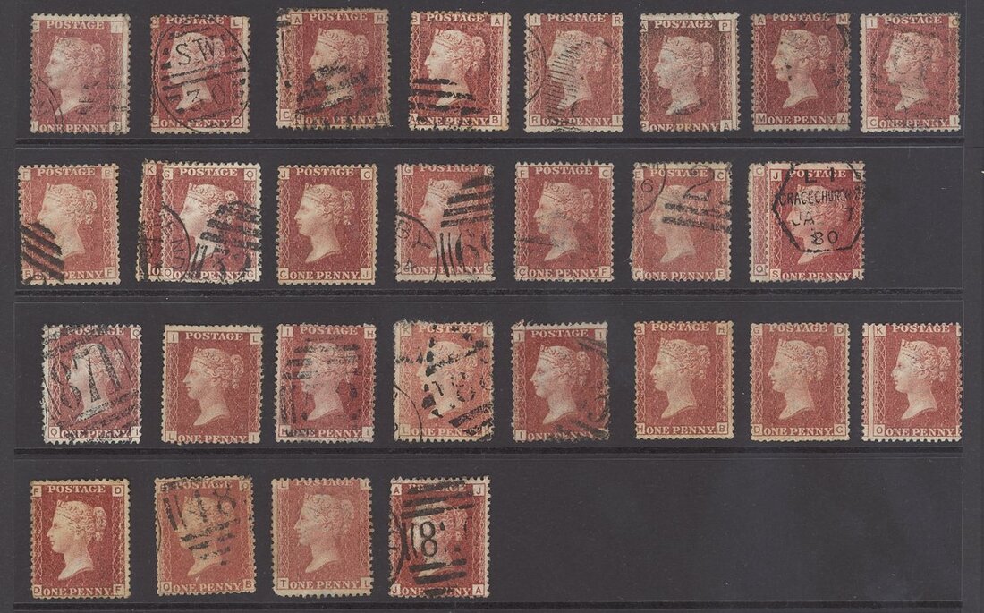 1864-79 One Penny Rose-Red Plate Numbers