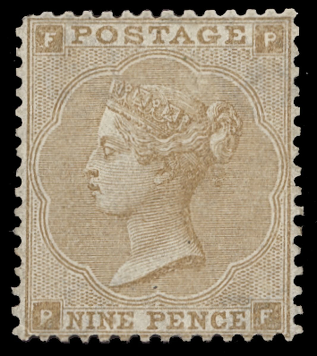 9d. bistre, PF, well-centred and good colour, unused and regummed; one pulled perf. S.G. 86, £5,800. Photo