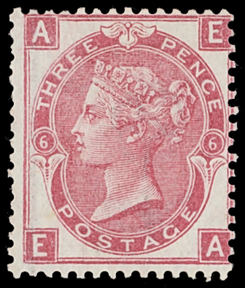 3d. deep rose Plate 6, EA, part original gum showing typical gum streaks. Fresh and fine. S.G. 102