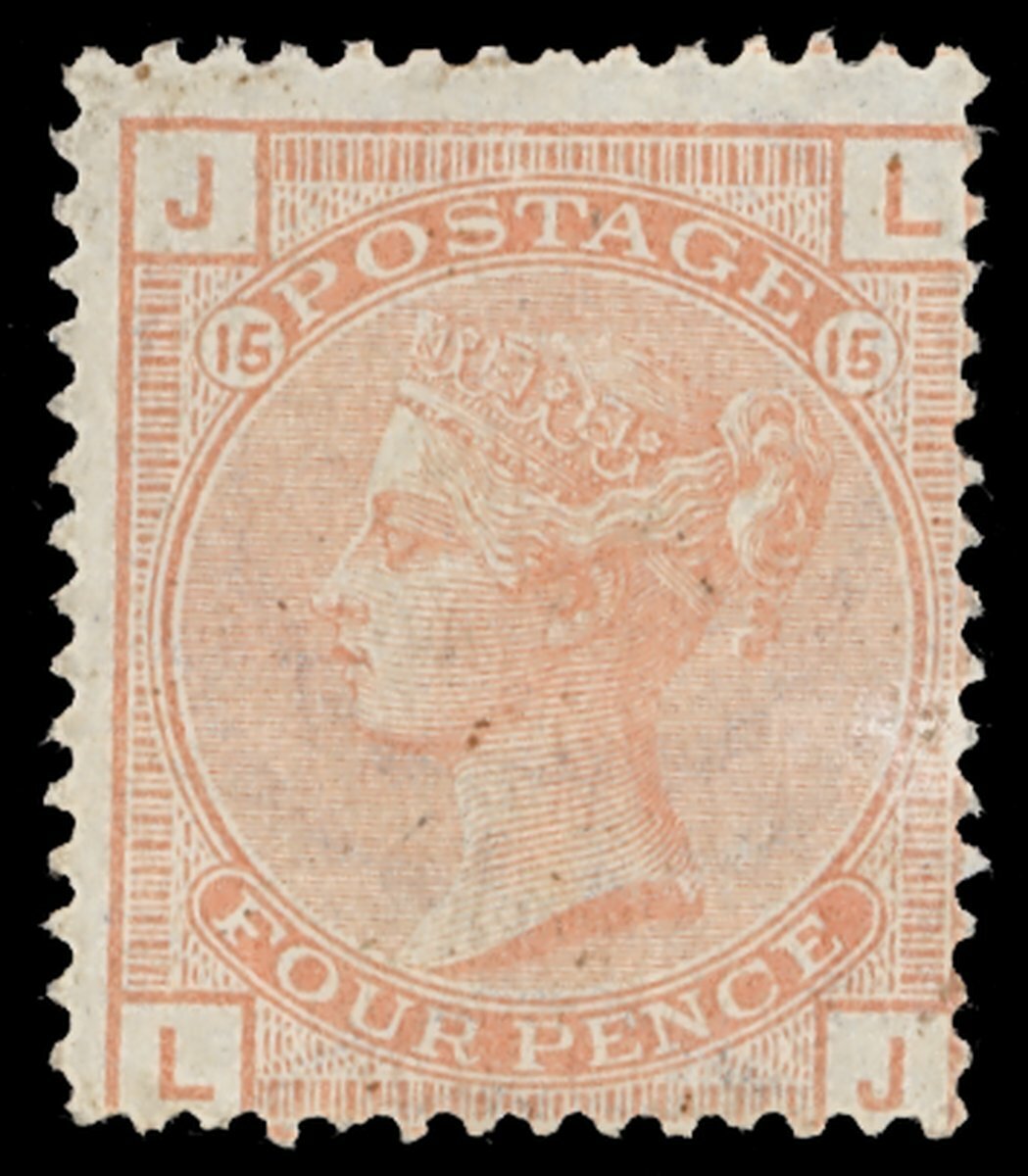4d. vermilion Plate 15, LJ, small part original gum. S.G. 152, £3,000. Photo