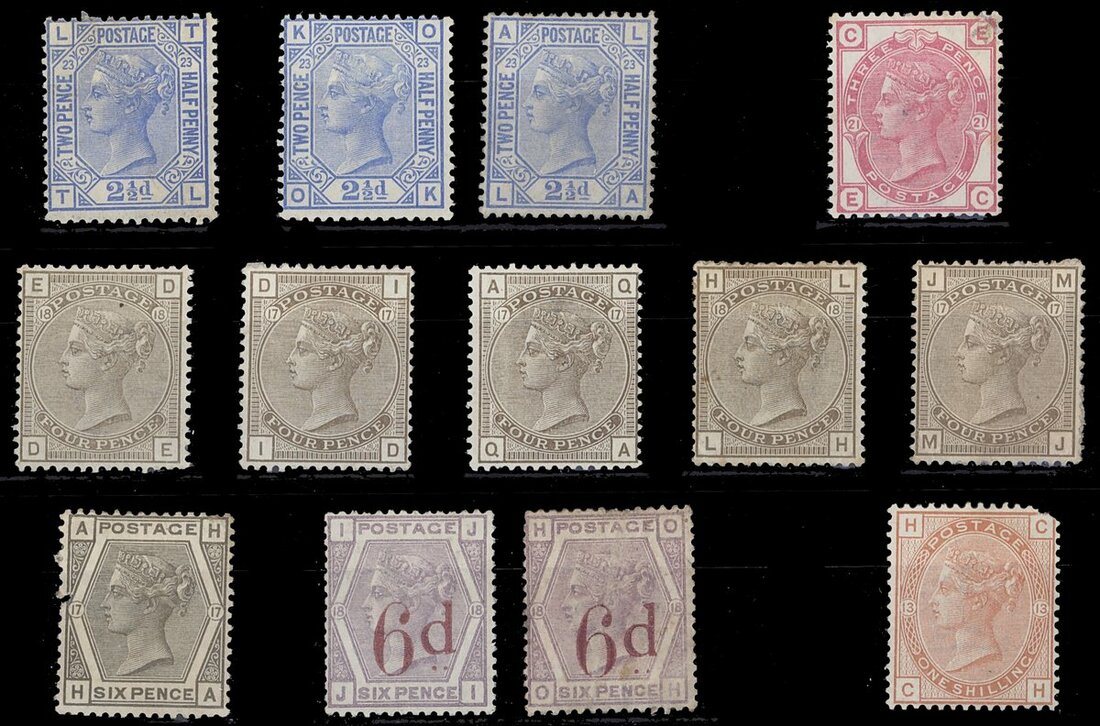 2½d. blue (3), 3d. rose, 4d. grey-brown (5), 6d. grey, 6d. on 6d. (2) and 1/- orange-brown, unused; most with faults. (13)