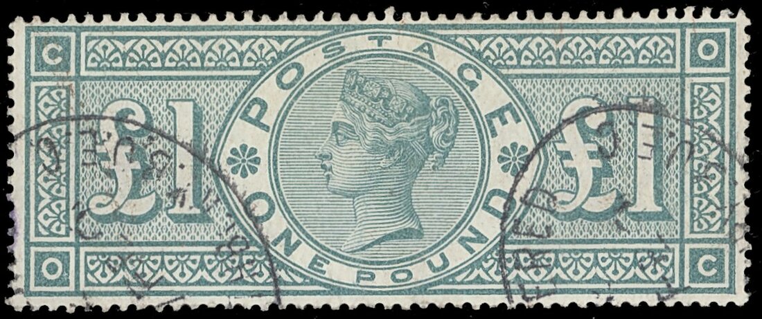 £1 green, OC, cancelled by two crisp registered oval handstamps; tiny inclusion on the reverse, otherwise fine. S.G. 212, £800
