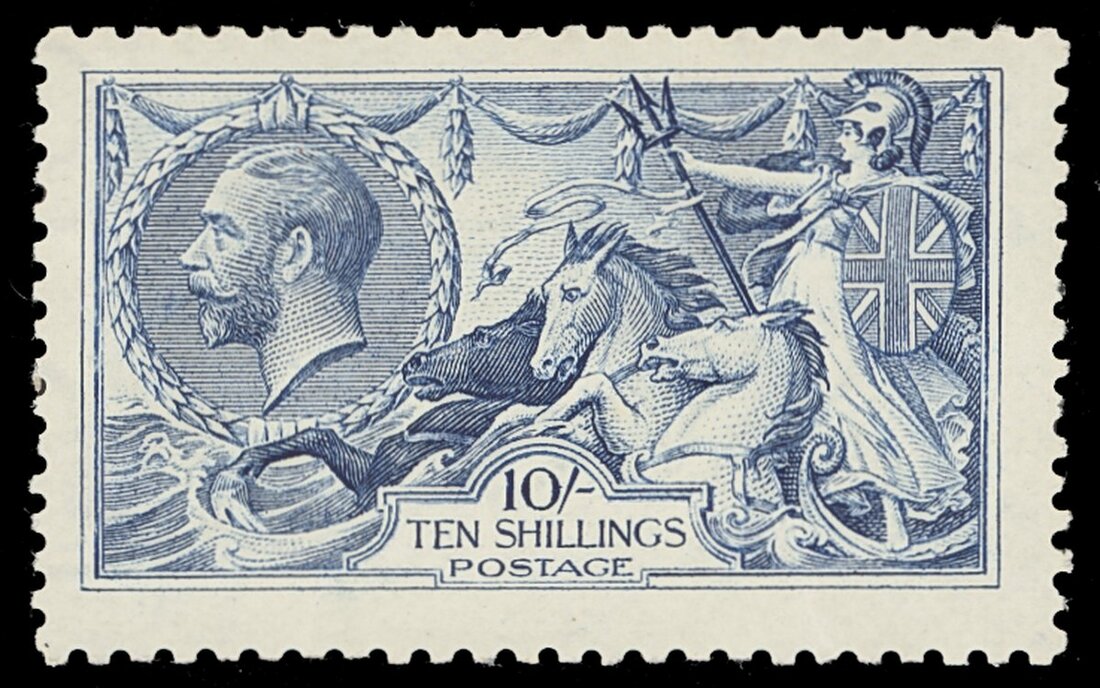 10/- blue, lightly mounted mint; a couple of slightly short perfs., gum wrinkle. S.G. N70 (1), £2,500