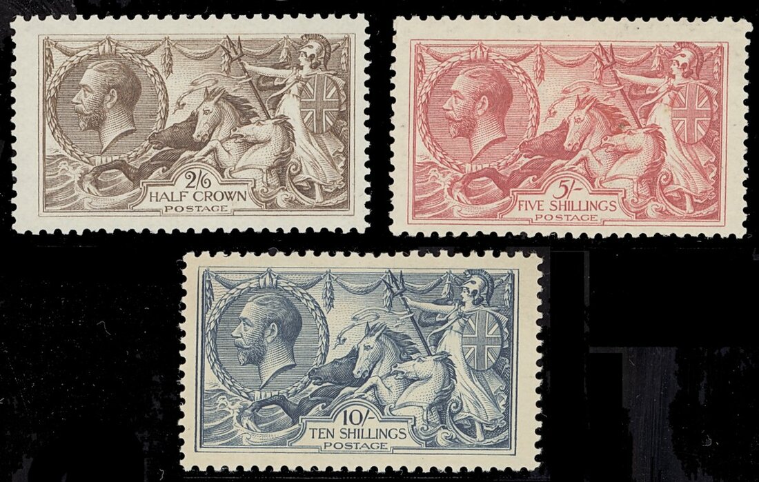 2/6d., 5/- and 10/-, large part original gum; slightly gum toned. S.G. 414, 416, 417, £960
