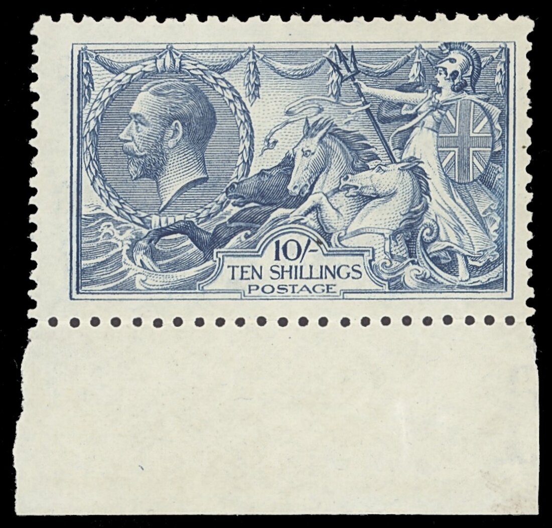 10/- dull grey-blue, unmounted mint from the foot of the sheet; nibbled perf. at top, otherwise fine. S.G. 417, £860. Photo