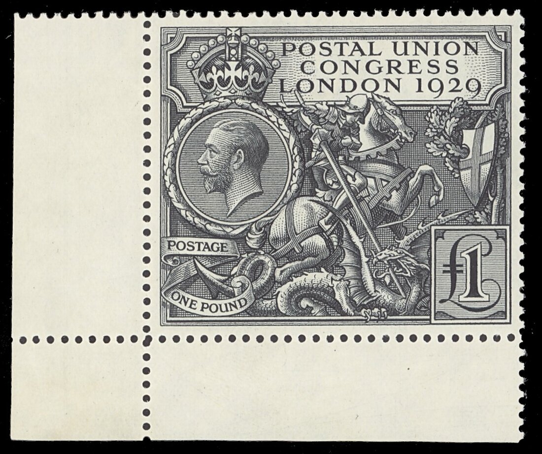 £1 black lower left corner marginal example, unmounted mint; slightly streaky gum in the lower margin, S.G. 438, £1,100