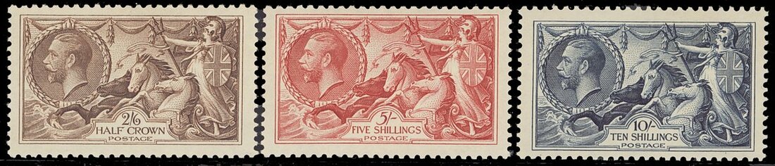 2/6d., 5/- and 10/-, unmounted mint; a little gum toned. S.G. 450-452, £1,000. Photo