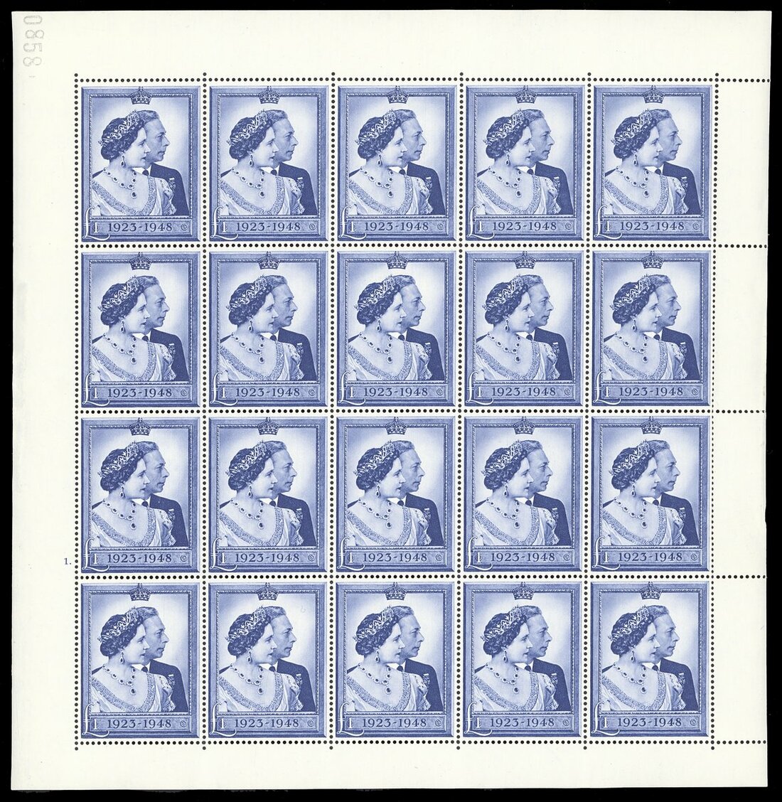 £1 blue complete sheet of twenty (5x4), unmounted mint, usual slight wrinkles, fine. S.G. 494, £800+